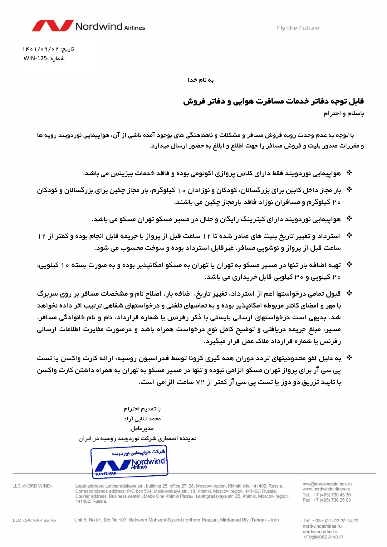 هواپیمایی نوردویند فقط دارای کلاس پروازی اکنومی بوده و فاقد خدمات بیزینس می باشد